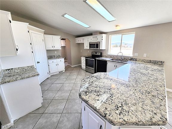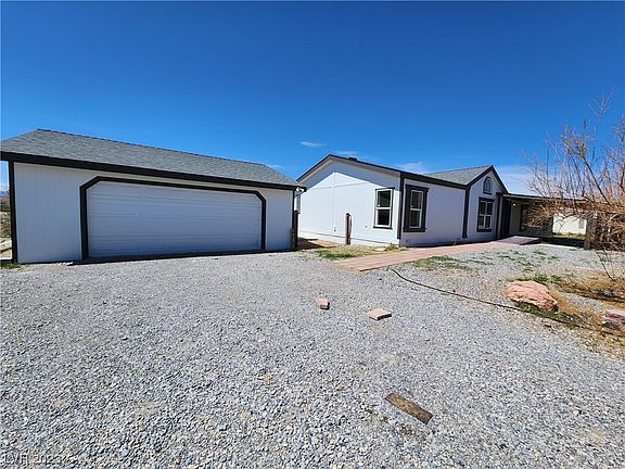 BEAUTIFULLY REMODELED MANUFACTURED WITH GARAGE FOR SALE IN PAHRUMP, NV! 3 bedrooms, living room & family room, big kitchen with breakfast bar and dining room. A little over an acre with a private well & septic. Garage boasts a secondary space for storage or workshop with a overhead door. Back yard is fenced. Don't miss out on this one - it won't last!