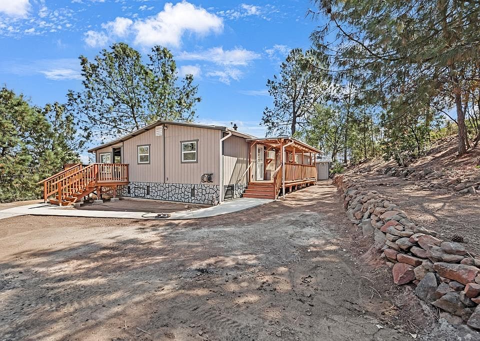 If you're seeking privacy and a connection with nature, this home on a 10-acre lot is perfect for you. Enjoy your mornings sipping your favorite beverage on the back deck while taking in stunning views of the Sierras, including Pyramid Peak. With the Pine Hill State Ecological Preserve just across the road, you can watch the wildlife scamper by. This beautifully updated triple-wide mobile home has been remodeled from top to bottom and inside out featuring new paint, siding, updated fixtures, an upgraded kitchen and bathroom, energy-efficient double-pane Low-E windows, a water softener, and an updated electrical panel all designed for your comfort and ease of living. The property also offers a seasonal pond, a chicken coop, a barn, and a shed protecting the well. Additionally, there's space for an above- or in-ground pool, boat storage, and RV parking with HOOKUPS. With low HOA fees covering road maintenance, this property combines tranquility and convenience being close as 5 minuets from shopping and restaurants.