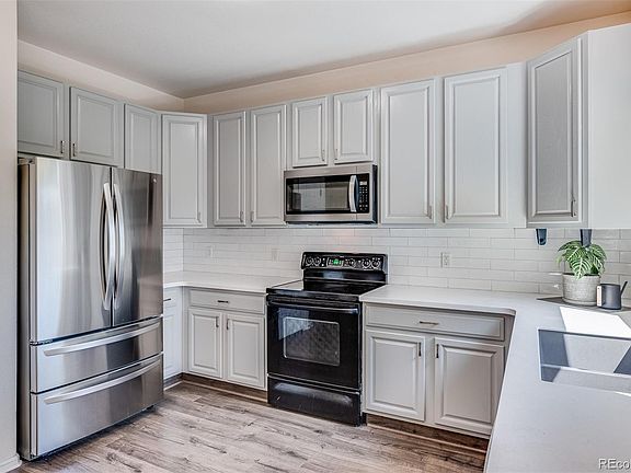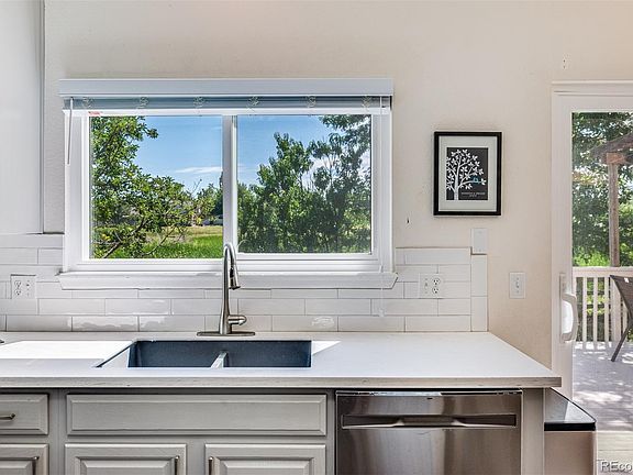 Discover comfort and convenience in this well-maintained home located in the Cherry Creek School District. With an open kitchen layout adorned with hard surface countertops and new LVT flooring, meal preparation becomes a social event. Enjoy the cozy gas fireplace in the family room and relax on the freshly resurfaced deck overlooking open green space, enhanced by a sprinkler system and fruit trees.