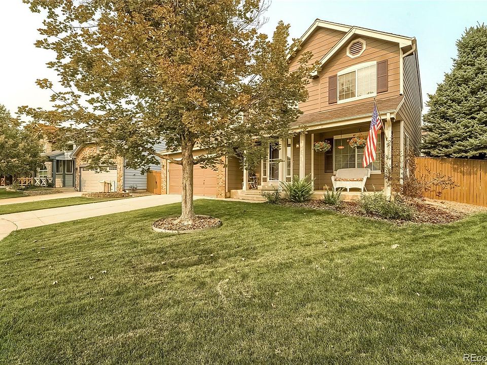 Absolutely stunning home that is perfectly nestled in Highlands Ranch. This spectacular home shows like a true model and has beautiful style and custom finishes throughout. This amazing home is perfectly located on a quiet street and sits on an over-sized lot with a park-like setting. There is so much to see in this remarkable home. The open concept kitchen is amazing and includes all appliances and features extended wide plank wood grain tile floors and a dining area with a bay window. The perfectly situated family is flooded with natural light through the large windows that perfectly frame the scenic outdoor living space. Here you can relax in front of the cozy brick faced gas fireplace and take in all of the scenery. The main floor is complete with a formal living and dining room that is the perfect space for entertaining or everyday enjoyment. The upper level features a luxurious master suite with soaring vaulted ceilings, double closets and a nicely appointed en suite. The upper level is complete with two additional large bedrooms, a full bathroom, laundry, and spacious open loft area that is perfect for an in-home office or kids play space. The full unfinished basement is amazing and ready for your finishing touches. The outdoor living area is an entertainer's dream. Enjoy the extended cement patio that leads to the over-sized, professionally landscaped yard - a must see! This incredible area has a large manicured grass area that is perfect for summer activities and a tiered planting area where you will find planted flowers and native plants and trees. Relax on the patio and enjoy the sounds of the cascading water feature as you take in all of the beauty. Other features include an over-sized 2 car garage, Central Air, Newer paint, and more. Perfectly located within the community and walking distance to miles of biking and hiking paths, minutes to Sante Fe Bl. with easy access to C-470, and close to all of the community attractions and recreation centers.