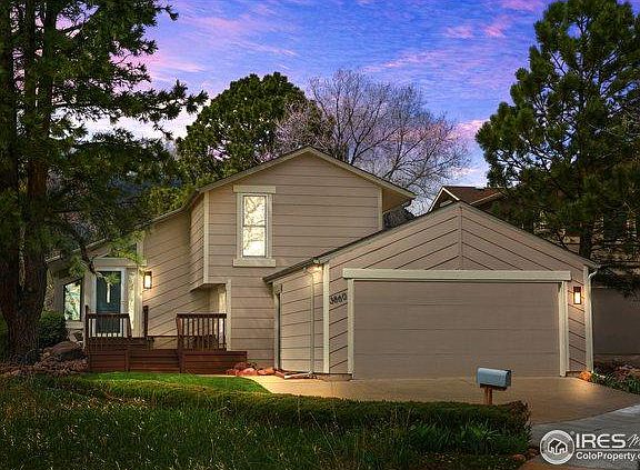 Prime Shanahan Ridge location! This darling updated tri-level borders open space on 2 sides & boasts gorgeous Flatirons & plains views. Quiet & privacy, the best of both worlds. Many windows & 3 sliding doors bring in loads of natural light in. Enjoy your morning coffee or alfresco dining off on the deck off dining area. Remodeled bath on lower level. Seller added door to 2-car garage in 3rd bedr, can be closed off or used as a mudroom/office. On Skip route, steps to trailheads & open space!