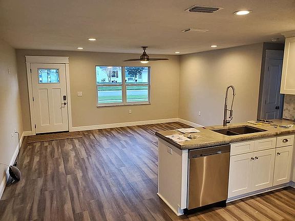 Beautiful 2 bedroom, 1.5 bath block home has been completely remodeled including new roof, windows, A/C, stainless steel appliances and vinyl fencing. 1 car garage and a spacious .18 acre fenced lot. The eat in kitchen has French doors that lead out to the back yard with a covered patio. The home is located in Alpha Village Estates, a well established neighborhood located close to US HWY 301, shopping, restaurants, schools, medical and entertainment.