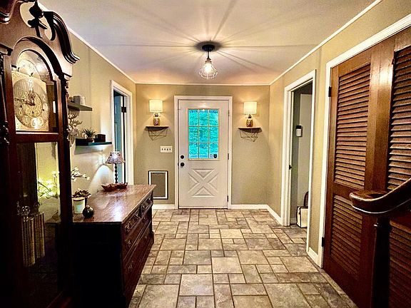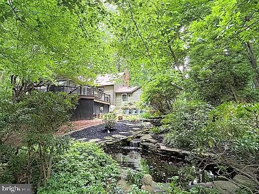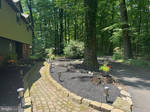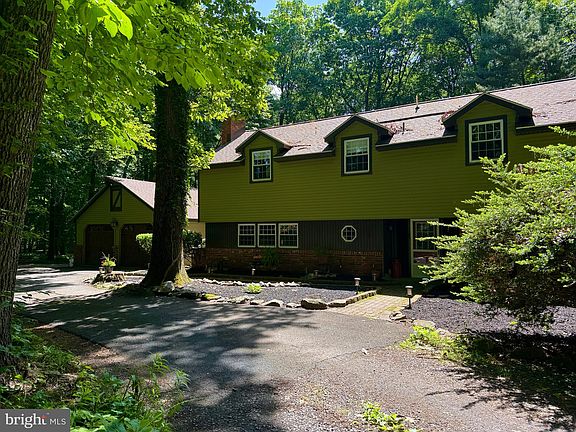 Nestled among the trees on a little-known, one-lane road in Buckingham, but just a 5-minute drive to the heart of Doylestown Borough, this 4 bedroom, 2.5 bathroom home is a stunner. The house has a unique front-to-back split. Walk through the front door into a large flagstone foyer. To the right is a large bedroom, and to the left is a large, but cozy den with a brick propane fireplace controlled by a thermostat remote. An updated powder room rounds out this first level. Up a few steps, and you are welcomed into the main level of the house. An open floor plan living room and dining room combine with a large four-season panoramic view sunroom to drench the space in sunlight. The sunroom boasts four large skylights, sliding windows on three sides, and a gorgeous state-of-the-art pellet stove to keep everyone warm in the cold months. The kitchen has upgraded stainless steel appliances, and features a cathedral ceiling and skylights, as well as a door leading to the pantry and laundry room. Upstairs, you'll find two more bedrooms with views to the scenic front yard, an updated dual-sink hall bathroom, and the large primary suite. The primary en-suite spa bathroom is completely remodeled and features a heated floor and large walk-in shower. Back downstairs and outside the sunroom, a wraparound composite deck with chic steel-cable railing allows you to take in the views of the lush, private backyard, complete with a two-level pond and limitless trees. A large basement with drywall installed and a door to the backyard gives you flexibility to make this into a hangout spot, second living room, or game room. With an attached two-car garage and plenty of driveway parking for guests, as well as a woodshed, there's room for everything and everyone. For dog lovers, this home comes with a convenient dog door and an Invisible Fence brand professionally-installed dog enclosure that allows your furry friend to explore the nearly one-acre lot. This lovingly-maintained house had a new roof installed in 2020, and tons of upgrades, all in the award-winning Central Bucks school district. Houses on this lane don't become available often, and always go quickly, so schedule your showing today before this one gets away!