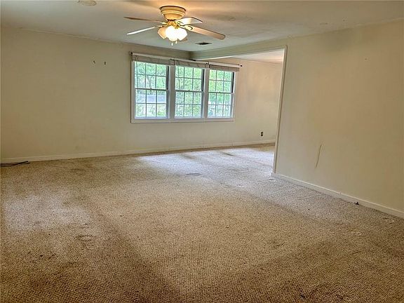 Brand new roof!!!! Some upgrades in both bathrooms. Master bathroom has large walk in tiled shower. This was the church parsonage. Church will fence the side to separate the play yard from the house. Attached carport allows easy foyer entry. Large living room and dining room L combination. Needs redecorating but is reflected in this low low price. Deep 200 ft. lot with privacy woods at back. 2024-09-05
