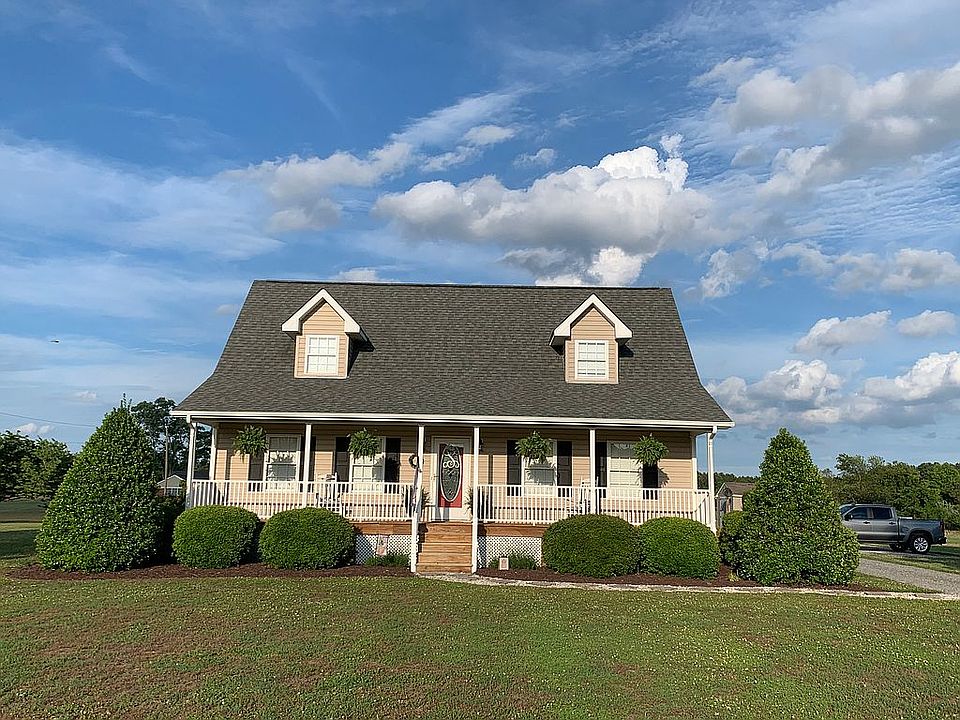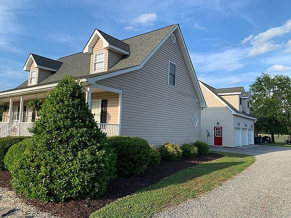 Immaculate cape with beautiful front porch situated on two beautifully landscaped grounds in the town of Irvington. The main house features three bedrooms and two and a half baths. The guest apartment over the three car garage features a room with a kitchenette/living area, one bedroom, and one bath. Beautiful kitchen with updated GE appliances, pantry, open to dining area separated by cabinetry with open countertop. Off the kitchen is the back hall with a powder room and a utility/laundry room with exterior door to deck. There is a sitting room/media room off the dining room with doors to the back deck and open window to kitchen. The primary bedroom is on the first floor with ensuite with soaking tub and separate shower and walk in closet. The two other bedrooms are on the second floor, one with walk in closet and on with two double closets. There is a full bath and media room on the second floor. Total square footage reflects main house and guest apartment square footage. Walk, bike, or jog to the amenities of the town of Irvington. There is also a boat ramp in Irvington to launch a boat for a small fee. Great location in the triangle!