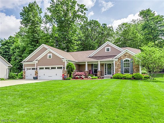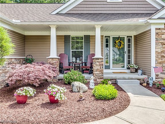 Spectacular ranch home located in the top-rated Green Local School District. This beautiful custom-built ranch offers ample living space and an open floor plan. When you walk into this home, you'll be greeted by a charming front porch with beautiful pillars. As you enter, you'll notice the spacious foyer, gleaming hardwood floors, and vaulted ceiling. The open floor plan allows a seamless transition from the great room with a beautiful raised hearth fireplace to the dining area and into the kitchen. The expansive kitchen offers, granite counters/with a sit-in bar and sink, stainless steel appliances, beautiful tile backsplash, a pantry, a beverage cooler, and tasteful light fixtures. The first-floor master suite features a vaulted ceiling, a barn door to the master bathroom that offers a double sink vanity, a large walk-in shower, and an 11x11 walk-in closet! The first floor is completed with 2 more bedrooms, a full bathroom, and a laundry room with/utility sink and a big window. The f