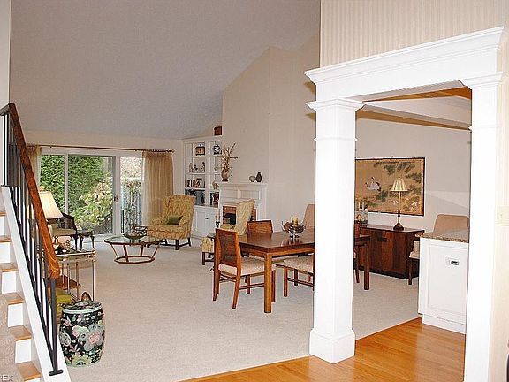 Wonderful Landerwood Glen Townhouse. Open Floor Plan - Light and Bright with Skylights in Foyer, Kitchen and Loft. Updated eat in kitchen with hardwood floors and granite counters. Kitchen opens to the Great Room which features a fireplace, built ins, vaulted ceilings and sliding doors to the private patio. First Floor Master Suite with updated bath featuring double sinks and corian. Master Suite also has sliding doors to the patio. Library on first floor with built ins. First Floor Laundry. Second floor features an additional bedroom, full bath and a loft (could be third bedroom).