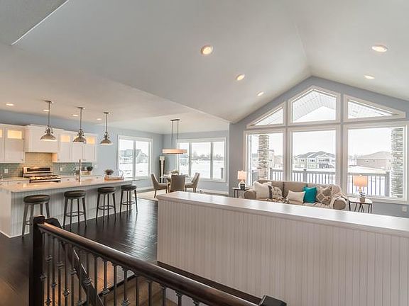 Step into this NAUTICAL inspired home, while enjoying the views of the water on SOUTHBAY, Bismarck's only private 55 acre lake. This well constructed K&L home offers an open-air feel the moment you walk-in. The home includes white cabinets with quartz counter-tops and white trim work through-out, along with 9ft ceilings both up & down, and a master suite that feels like paradise each and everyday. Along side the master suite are 2 other bedrooms and a full bathroom. The main floor also boasts a main-floor laundry and mud area off the garage, adjacent to the 1/2 bath. The lower level provides the same light & bright feel with complete views of the bay with and a walk-out door to the patio below. The lower level includes 2 bedrooms, a full bathroom, a study/media room and a finished storage/den area, it also offers a wet-bar entertainment area with easy access to and from the outside. The garage is oversized and provides room for 4 vehicles and plenty of storage. Gated/cul-de-sac.