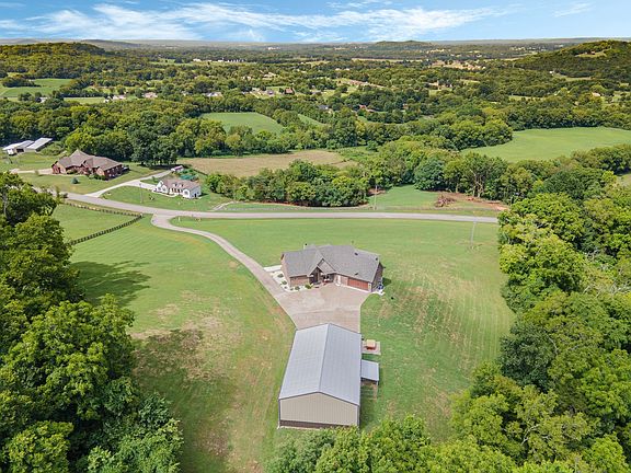 Nestled on a serene hillside, this stunning home boasts panoramic views that will take your breath away. Inside, the open-concept living space is designed to maximize natural light and highlight the spectacular scenery. Floor-to-ceiling windows in the spacious living room frame unobstructed views of rolling hills. The kitchen features stainless steel appliances, leathered granite countertops, and a large island. Perfect for entertaining while enjoying the picturesque backdrop. The owners suite is a private retreat, complete with a luxurious en-suite bathroom & walk-in closet. Additional bedrooms are generously sized and offer a shared bathroom, giving comfort and privacy for family or guests. Step outside onto the expansive patio, ideal for dining, entertaining, or relaxing. A few other extras with this home include 8' doors, hot tub, sauna, and storm shelter. Additionally there is an impressive 40x60 shop with 15ft doors for storing cars & toys. All of this sits on 10 beautiful acres!