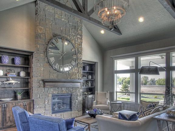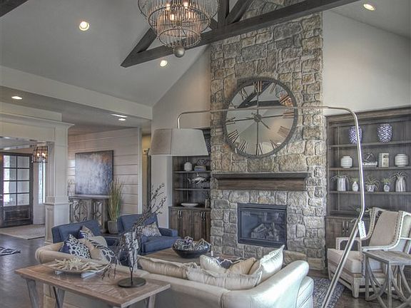 2015 Parade Home the "Claire Eliza" by James Clyde Homes - Spacious open floor plan featuring hardwood floors and vaulted great room with exposed rustic beams adds an Urban touch to the home's Eastern Coastal style. Thermador appliances combined with beautiful trim work and custom cabinetry creates a beautiful gathering space for entertaining. Expansive garage with epoxy flooring and private mechanical room. Full landscaping paired with an outdoor fire pit acts as a stunning extension of your indoor living.