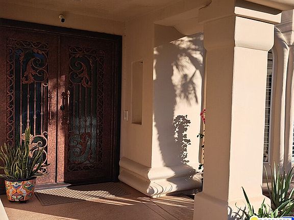 Stunning Palm Desert entertainer's estate home located in coveted Desert Mirage enclave. Designer's home features 3 bedrooms + 4 baths. An indoor/outdoor floor plan welcomes you with soaring ceilings and a grand entry to the large great room with inviting fireplace and gourmet cooks' kitchen with SS appliances, quartz counters & abundant cabinetry all with views of the colorful resort style backyard. Dramatic step down formal living room seamlessly leads to an impressive formal dining room. The bedroom wing features a sumptuous primary suite with spa like bath; separate shower and jetted soaking tub plus a fashionista's wardrobe closet with built ins. French doors open to a cozy outside patio for morning coffee. Secondary bedrooms feature connecting Jack n Jill bathroom. Outside dazzles with a sparking pool and spa, outdoor kitchen, dining and lounging areas, plus grassy area, manicured gardens with mountain views to enjoy with family and friends. The indoor laundry room with 3/4 bath is perfect for summer use and pool changing room. Massive 3 car garage, dual zoned A/C + SOLAR panels complete this trophy estate! Near to world famous El Paseo shopping district, beautiful Desert Willows golf course, theaters, restaurants and more- Welcome home! Your desert oasis awaits!!!