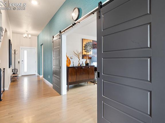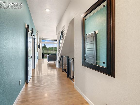 'Welcome to this exquisite Mid-Centry Modern home built by Keller Homes, A Toll Brothers Company. This stunning 4 bed, 3 bath home offers a spacious and all-inclusive living experience. Located in the exclusive Elan neighborhood of the Cordera Community, prepare to be enamored by this beauty, both inside and out. The main level highlights an open floor plan with many high-end finishes, to include: the 42" stainless steel framed gas fireplace in the living room, gourmet kitchen with maple cabinets and oversized island, automated custom window coverings, and white oak hardwood floors with a birch stain throughout the main living area. Head upstairs to the loft where it's a staple for entertaining, or relaxing. Enjoy the breathtaking views of Pikes Peak and the stunning views of the Air Force Academy right off the outdoor balcony. The basement is the perfect set up to enjoy the latest movies with the premium theatre system and 9 ft ceilings. Both bedrooms in the basement offer ample amount of space and walk in closets and one of a kind custom wall painting. Other great features about this home include epoxy coated garage floors, electric dog fence in the backyard, modern five-panel barn doors in the study, shaw carpet, and custom window coverings throughout the whole home. You won't be disappointed when you view this incredible home.
