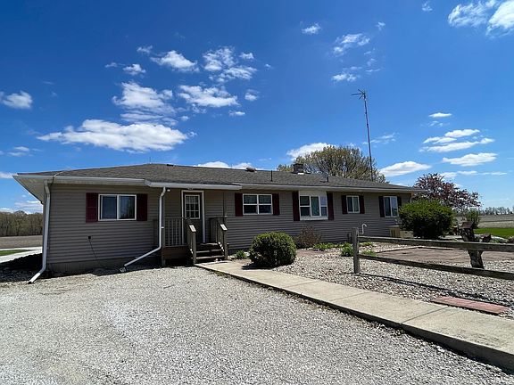 Quiet and secluded gorgeous country home on approximately 3 acres. The home has a covered front porch, 3 bedrooms, 2 baths, full basement, 1 car detached garage and a whole house generator. Beautiful 50X60 pole barn with concrete floors, multiple rooms and an upstairs. There is also a 26X109 pole barn and 3 grain bins. This is the perfect country setting.