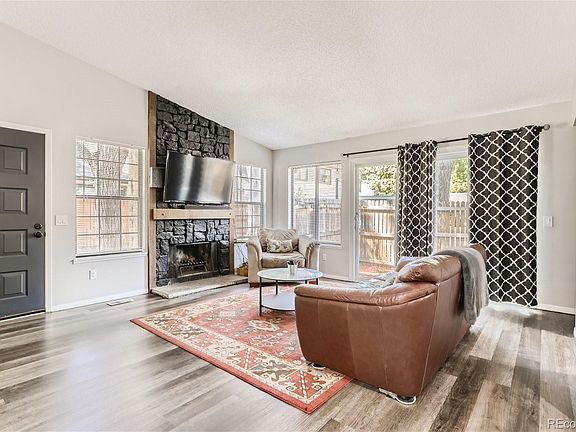 Remodeled Ranch Style Townhome with finished basement! Convenient location and zoned for Cherry Creek School District. The cozy townhome has been beautifully updated and ready for its new owner. Main level is open and bright with kitchen updates that include granite counters, stainless appliances, new cabinets and fixtures. Family room has cozy stone fireplace overlooking the nice fenced in patio area great for a summer evening conversation area. Newer flooring throughout includes laminate wood as well as carpet in bedrooms. The finished basement is a great area for game room, family room, work out area, play area and includes a 3/4 bath, large bedroom and built in cabinets in family room area. Carport is located right outside the property just off of the fenced patio area.