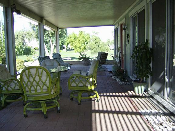 On Golf Course Beautiful home. Remodeled Kitchen Corian Counter tops. Recessed Lighting. Home in excellent condition Fabulous Golf Course & Mtn View. Wood type floors in Kitchen, entry, fam. rm. and office Metal electric shades on Golf Course Windows Plantation Shutters in FM Rm. Aluma Wood Patio cover EZ maintained astro turf in front & patio area Single car garage