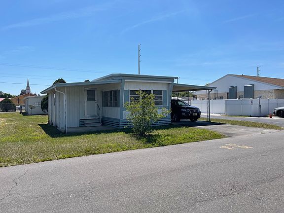 LOW LOT RENT!!! FULLY FURNISHED AND MOVE IN READY!!! This home is located on a corner lot in a 55+ community with the clubhouse, pool and shuffleboard just across the street! PARK RULES: Anyone living in the home must be 55+ but second person can be 45+, NO PETS, Lot rent $370 per month and includes the amenities. Water, Sewer and Trash $40 a month. Electric runs around $70 a month. This community is very quiet and is located near lots of restaurants, medical facilities and much more!! There is a large screen room where you can enjoy a cup of coffee in the morning. This home has a metal roof and an almost new AC/Heat unit. Step into this home to find it very clean and spacious along with FULLY FURNISHED and turn key. The home has a nice size kitchen with lots of cabinets and is open to the livingroom. Off of the livingroom is a large spacious bedroom or would also be perfect to use as an office or even a sitting room. To the back of the home you will find a second bedroom and nice size bathroom with standup shower. Come take a look at this home!!!!