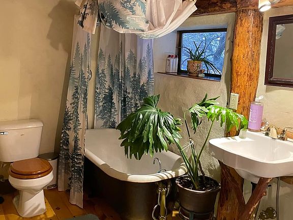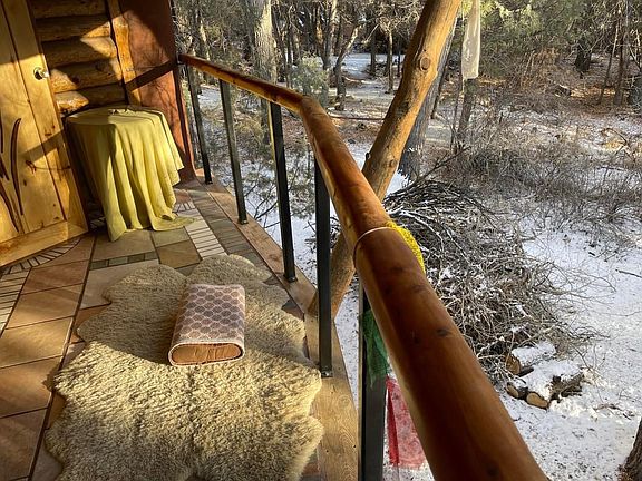 A private straw bale home nestled in a creekside Cottonwood Grove beneath Crestone's majestic peaks. Earthy details throughout. Perfect extended retreat for an individual, couple, or a small family.