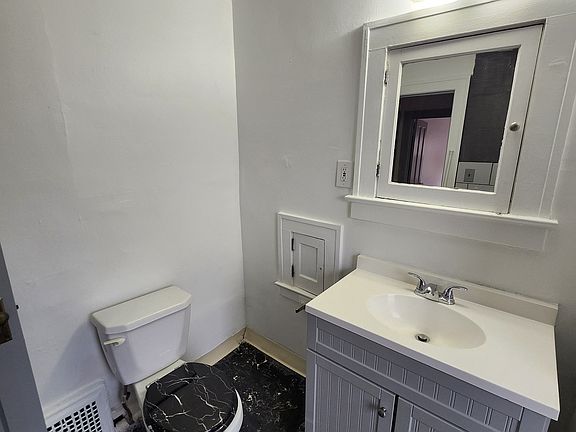 3 bedroom side by side duplex with one full bath. This unit has a private porch, and a separate basement. Off street parking. The house is on a corner lot and the driveway is off of the side street.