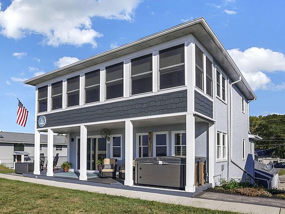 From sun filled spacious living and dining spaces to entertaining in the chefs kitchen with cherry cabinetry, Brazilian cherry flooring, newer appliances, granite counter tops, large island for more seating and tiled backsplash. The home boasts 4 bedrooms and an option for a 5th, Wake up to the beauty of expansive lake views from your master suite. 3 Season room off master! The bathrooms have been completely renovated to match the homes' elegance. This home offers an abundance of upgrades and storage. Including, large laundry room, work out/game/hobby room and extra pantry option. Outdoors, you will find a spacious entertaining area with 2 tiered deck featuring remote controlled Sunsetter awning as well as privacy blinds on both sides. Grill from your outdoor kitchen, and relax in your hot tub every eve! Bring your boat and park at your own Boat dock! Homeowner has a large list of upgrades and improvements!