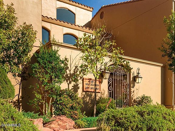 Penthouse apartment with stunning endless panoramic Red Rock Views in the original Park Place. Designed by award winning architect Don Woods this highest unit in the building combines comfort, style and convenience. - Securely located in a double gated building and gently used as a second home, a front of windows and a large terrace invite you to take in some of the best Views Sedona has to offer. The features of this private and meticulously cared for home include artful floor and wall mosaics, Kahrs engineered wood flooring in living and bedrooms, Travertine flooring in kitchen and bathrooms, Gourmet kitchen with all Viking appliances and custom cabinetry, high-end finishes, natural gas fireplace and a spa-like primary bath. See more The large view-terrace invites the all year around Sedona indoor-outdoor lifestyle. Living room and both bedrooms open to the terrace.
