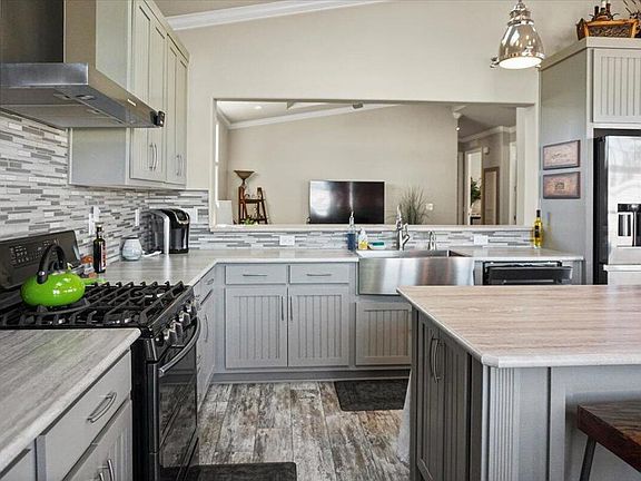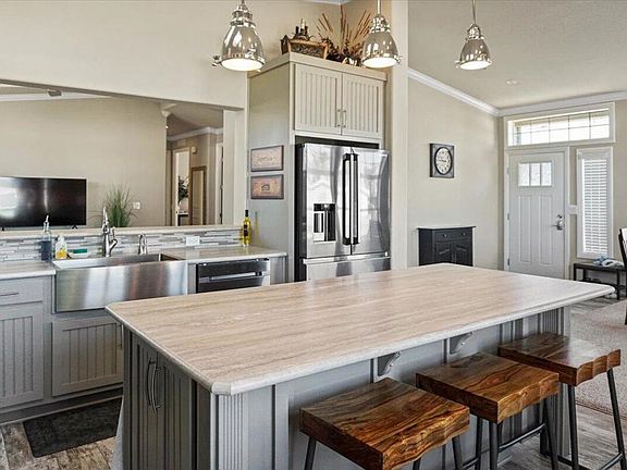 This is truly a remarkable home at 1800 sq ft with high vaulted ceilings thru out the home. Kitchen has a large center island with an appliances for your cooking experience. There is a 3 car finished detached garage with AC and there is a section of the garage that has stubbed plumbing connections. The home is located in a 55yr or older community, there is an 18 hole executive golf course with a pro shop, a club house with a restaurant and bar. 3 swimming pools, one is for your grandkids and family to enjoy. There are so many activities and clubs to keep you occupied if you choose. Has low HOA dues of $351/month which includes 24 hr security, golf, cable tv, internet, trash pickup and our monthly newspaper. You own the land that your home sits on.