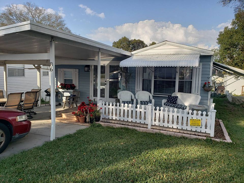 Beautifully remodeled 2-bedroom 1 1/2 bathroom mobile home! No expense was spared with this home. Outside features a lovely seating area with a 2-car carport. As you walk into the home you will notice the beautiful open layout in the first living room. As you walk to the right you will see the second living which connects to the dinning room and kitchen. The kitchen features extra long cabinets which you do not see in mobile homes. With the open floor plan for the kitchen it becomes great for entertaining quest and family. As you walk through the kitchen you will walk into the full bath that has an amazing shower! Which features travertine ceramic tile and plenty of storage space. The full bathroom connects to the master bedroom which has built a built-in dresser with draws and mirror. The second bedroom features a half bath which is located with the washer and dryer. The back patio is spacious and great for sun bathing in the gorgeous Florida sun. Schedule your showing today! Pictures don't do this home justice! Pets are welcome, current lot rent is $406.00 Baker Acres RV Park is an active 55+ community that has shuffle board, clubhouse, and a pool. Baker Acres is located within minutes from shopping outlets and grocery stores.