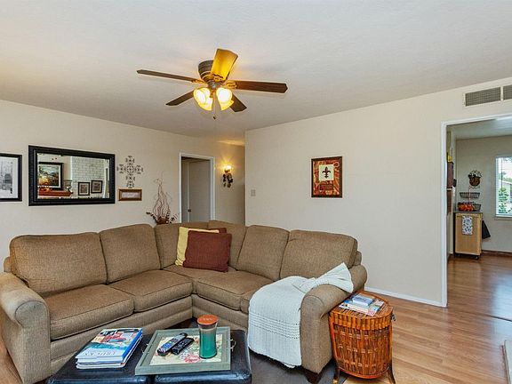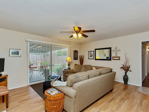 This charming 3 bed/1.5 bath located on a quiet street has been lovingly maintained. Dual pane windows, remodeled, bathroom, and ceiling fans throughout the home. Laminate flooring, ceramic tile and carpeting, as well. There's a large covered patio with spacious backyard which includes a shed. All bedrooms have closet organizers. Sellers will provide roof and pest certification. Shed, washer/dryer included in sale with no value or warranty.