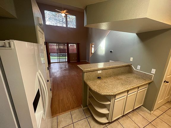 Lovely, airy 1410 sq ft townhouse, with vaulted ceiling, in highly desirable Ponderosa Trails. End unit, large, completely fenced and landscaped (artificial grass,) backing onto forest. Master bedroom, en suite bathroom, walk-in closet, on the main floor. Two bedrooms upstairs, each with a walk-in closet and an additional bathroom/shower combo. Lounge/dining room combo with fireplace and sliding doors onto the patio. The kitchen has attached laundry with a standard washer and dryer in an enclosed area. Loads of storage. Two-car garage. HVAC/Range/Boiler are all gas, Dryer is electric. Strictly non-smoking property. $25 application fee for everyone over the age of 18. Pets upon request Renter responsible for all utilities