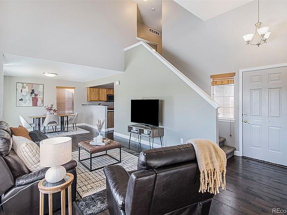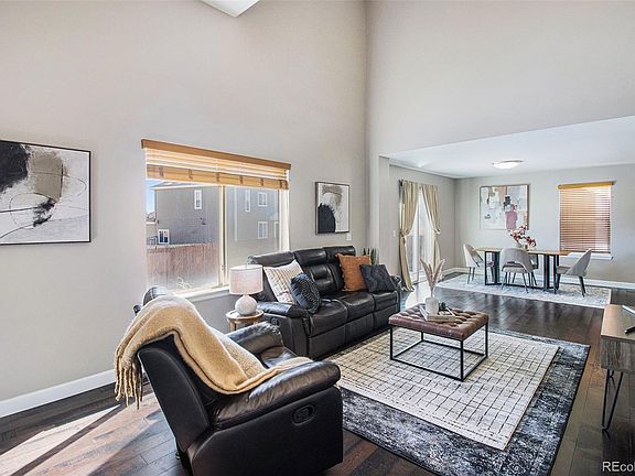 Beautiful East Quincy Highlands home, ready and waiting for you to move in! Upon entering, you are greeted with vaulted ceilings and beautiful flooring that guides you to the cozy living room! The open living and dining space are flooded with natural light from the south-facing windows, giving the entire space a warm and airy vibe. The dining room provides easy access to both the spacious kitchen as well as the large back patio, the perfect place for entertaining or spending a quiet evening relaxing! The beautiful flooring extends to the upper level, where the primary suite is the epitome of rest and relaxation with southern light, a walk-in closet, and ensuite bath! Two additional bedrooms provide ample space for family members, guests, or a home office! Ideally located, there is open space at the end of the neighborhood for walking trails, and there are ample opportunities for outdoor recreation with Aurora Reservoir and Cherry Creek State Park both less than 15 minutes away! 20 minutes down the road takes you to DIA, Denver Tech Center, or Fiddler’s Green, making this home convenient for work, travel, and entertainment! A gorgeous home in an idyllic setting, you don’t want to miss this one!