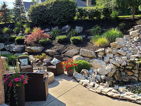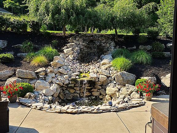 This Michael's Custom Home was built for the builder and features the finest finishes and upgrades. Upon entering you feel like you are at a resort spa with a wonderful view of the backyard waterfall. Floor to ceiling windows fill the space with natural light. Entertain in the fabulous great room with fireplace, served by a gourmet kitchen. The master and guest en suite bedrooms are at opposite ends of the house, giving both rooms privacy. Open staircase invites you to the lower level where you will find a rec room with wet bar (including dishwasher), exercise room, 2 bedrooms and a dry heat sauna room. Pipe in your favorite music while you relax in the sauna. Luxurious upgrades include rounded corners on all walls, pull-down blinds, tiered ceilings, 10' ceilings, built-in speaker system, crown molding and commercial grade garage doors. The private backyard with rock wall waterfall is the perfect place to sit and let the soothing sound of water wash away the day's stress.