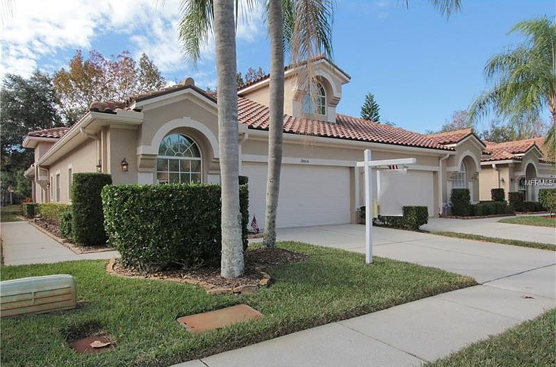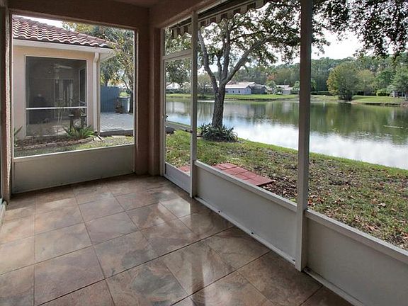 Come see this beautifully maintained Villa on a premium pond lot in the desirable community of Salem Square in Ridgemoor. This light and bright home offers an open floor plan with 2 bedrooms/2 baths/2 car garage +DEN. Kitchen has a large island, stainless steel appliances, breakfast area and hardwood look tile. Fabulous tranquil water views from the Living Room, Master Bedroom and screened lanai. Lanai has new stone look tile. Other upgrades include: spanish lace ceilings, newer stainless steel appliances and an awning in the back. Enjoy walking trails, tennis courts, basketball courts, a park, a playground, community pool, restaurant, and shopping. This home is close to many championship golf courses, great Eastlake schools, and about 30 minutes to the airport, and 20 minutes from the beaches. Home is located on quiet cul-de-sac, New Tile Roof installed in 2014. Call for an appointment today. This home will not disappoint.