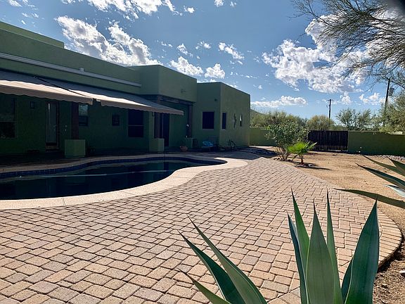HUGE REDUCTION on this OUTSTANDING CUSTOM HOME! Easy walking distance to beautiful downtown Cave Creek, yet with private million dollar views of Elephant Butte, Skull Mesa, and the Seven Sisters Mountains. If you want top level QUALITY of construction and finishes, with all SOLID ALDER 8' DOORS, ALDER CABINETS, lots of GRANITE, TRAVERTINE, STAINLESS appliances, but you don't need the mansion-sized home, take a look at this one. SOLAR PV CELLS on the roof provide 6.15KW of power, and keep electric bills LOW! Property is walled all around for PRIVACY and the backyard is a must-see!