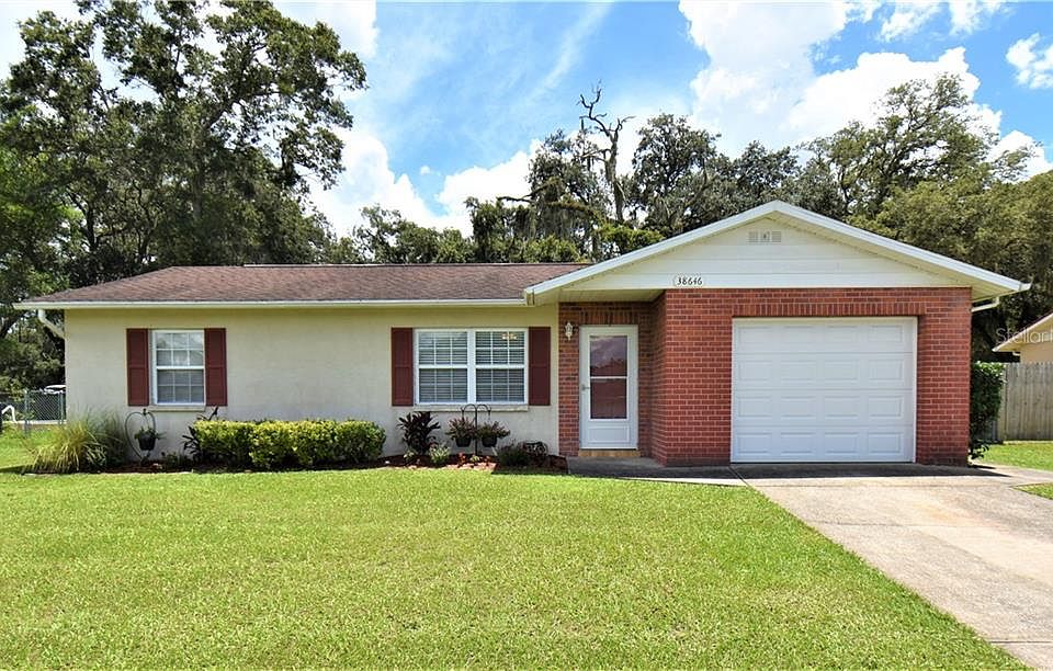 ACT FAST in Alpha Village! This 3 bedroom, 2 bath home is 1,162 square feet of living space with a fenced yard and over-sized garage! The large living room greets you at the front door and flows nicely into the dining and kitchen. The kitchen features custom wood cabinets...gorgeous! The family room is at the rear of the home and there's a sliding door that leads to the large backyard. The bedrooms are a split plan, all have ceiling fans and more than ample closet space. The hall bath has wainscoting with molding, lovely slate flooring and tub/shower combo. The hall also boasts a coat closet AND a linen closet. Need more storage? The garage has attic access and tons of storage shelves that line the left side wall. The garage houses the laundry area PLUS another full bathroom! Best news yet: there's still room to park a car! The sellers replaced the AC in 2018, updated the kitchen & main bath and added an addition to the home in 2003. There's NO HOA and the home is conveniently located very near SR 54 and HWY 301....close to everything that Zephyrhills has to offer and a short drive to Dade City or HWY 98 and Lakeland. This one won't last ... come see TODAY!