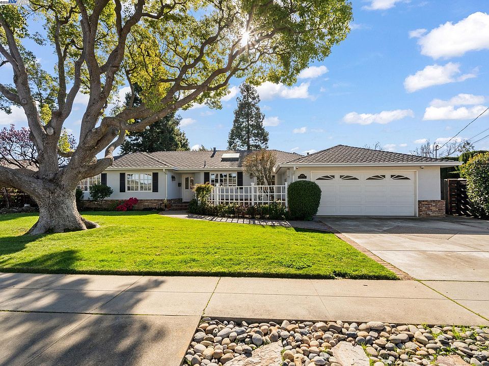 Welcome to this beautiful north-facing Glenmoor gem, offering a thoughtfully designed layout with 4 bedrooms, an additional office, and 2.5 baths. The chef’s kitchen is a dream, featuring a Sub-Zero refrigerator, a Thermador six-burner stove, double ovens, and luxurious quartzite countertops that flow seamlessly into the dining area. This home boasts a formal living room and a separate cozy family room, providing ample space for relaxation and entertaining. 3 skylights flood the home with natural light, while a whole-house fan and AC ensure year-round comfort. Hardwood floors throughout, along with updated bathrooms and a dedicated laundry room add to the home's elegance and functionality. All bathroom and laundry room countertops feature stunning quartzite, adding a touch of sophistication. Additional features include custom built cabinetry in the garage with durable epoxy flooring, proving excellent storage and organization. Situated on a spacious 9,902 sq. ft. lot in a quiet neighborhood, this home offers privacy and tranquility while still being centrally located. Enjoy easy access to I-880, Dumbarton Bridge, Amtrak, and BART—just minutes away, making commuting a breeze. Don’t miss this exceptional home in the sought-after Glenmoor neighborhood!