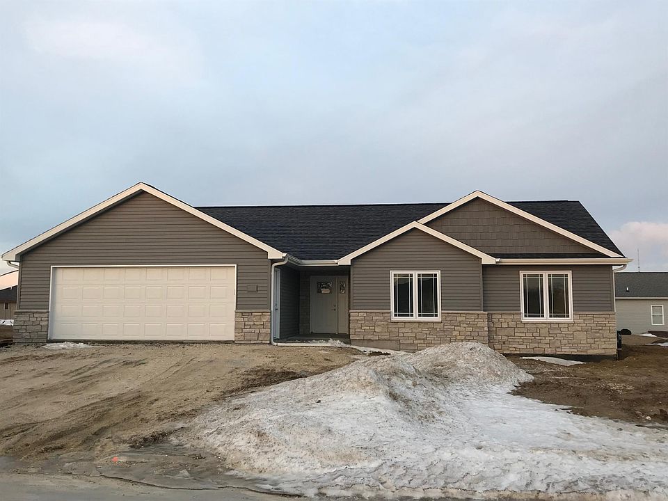"0" Entry Craftsman Style Ranch Home. White Craftsman-Style Millwork & Grey/Black Birch Custom Cabinets. Full 8' Unfinished Basement. Large Bedrooms with a Master Bed/Bath/Closet Set-up. Open Floor Plan. Low-Maintenance LVT & LVP flooring & Carpeted Bedrooms. Spacious 2-Car Garage with An 18' Overhead Door. 16' x 12' Concrete Patio Off of Dining Room. Stone & Vinyl Siding Exterior.
