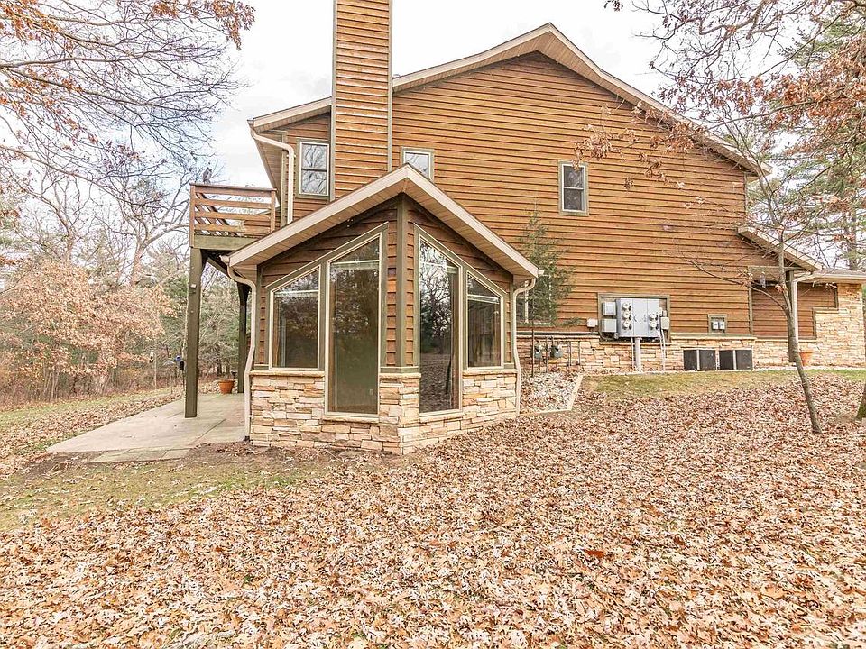 Located just five miles north of the Wisconsin Dells, this two-bedroom, three-bath condo is where you'll be transformed by the peace & tranquility of the "Northwoods" vibe, but enjoy all the amenities of a beautiful home. There's a Clubhouse with workout room, outdoor pool, walking trails, a private beach plus community dock with boat slips. The kitchen/dining area is perfect for hosting Holiday weekends and the sunroom, along with the living room with its beautiful stone fireplace, ensures enough room for everyone. There are 2 upstairsbedrooms, one with an ensuite bath with shower and a privatebalcony where you can enjoy your wooded views. Lower level and attached garage offer great storage for all your toys. Take a look today - this beautifully maintained corner unit will impress!