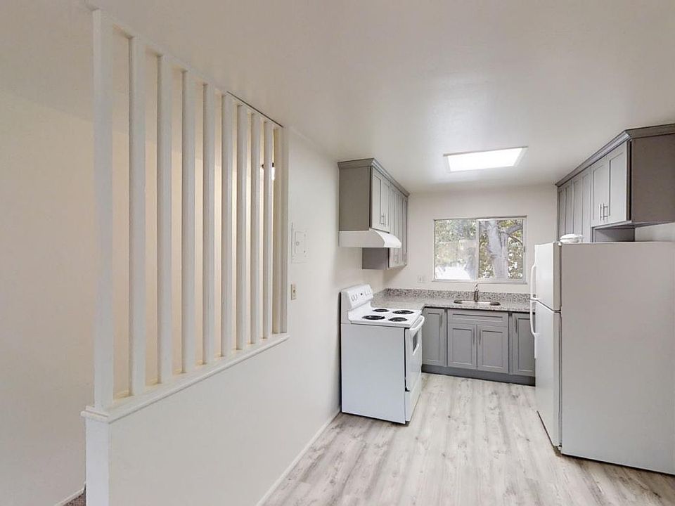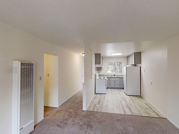 The spacious interior features carpeted/laminated floors, large windows with blinds, and sliding glass door that opens into the balcony. The lovely kitchen is equipped with fine cabinets and drawers with plenty of storage, glossy granite countertops, an oven/range, garbage disposal, and a refrigerator. Built-in closets on its bedrooms. The modern bathroom is furnished with sink vanity and enclosed shower/tub combo. A coin-operated washer and dryer are provided along with gas heating. No pets allowed. No smoking, too. There are a covered carport and open parking on a first come first serve basis. The tenant is responsible for electricity, gas, cleaning, cable, and Internet. Water, trash, and sewage will be covered by the landlord. Utility providers: PG&E and ACWD.