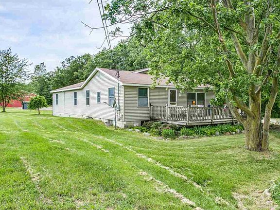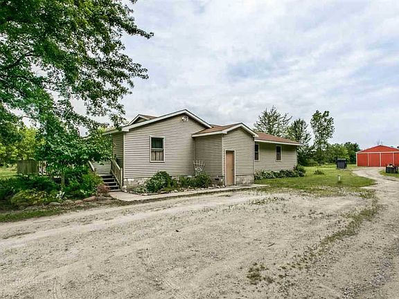 Relax, imagine yourself sitting on the front porch in this country setting and starting your day! This spacious over 2000 sq foot home is nestled into the 2 acres. This home has space galore for family and entertaining. The large kitchen is an eat in with lots of storage. The dining area is open concept located in the great room for all your entertainment needs. The great room is great and an empty slate for you to add your touches. It offers 4 bedrooms and 2 baths. Some updates to this home are fresh paint, flooring in front of the home and 2016 the home had the roof replaced. And if that inside space is not enough, come and enjoy the wildlife in your yard. The outside wood stove can heat both the home and the 40 X 60 pole barn. The pole barn has 2 20 foot sliding barn doors, electricity, loft and half of the floor is concreted. Location is close to I 69.