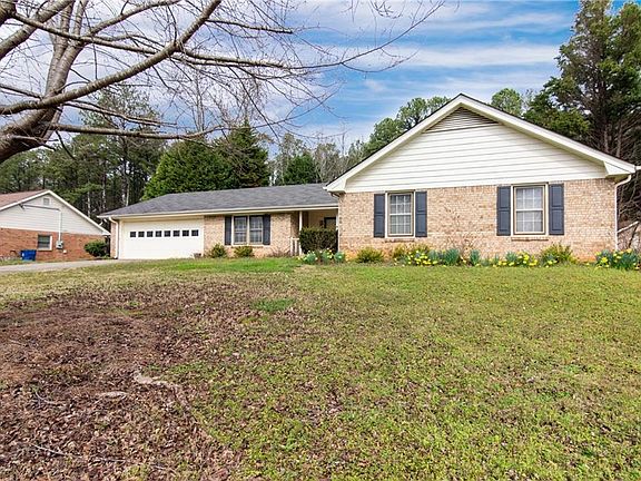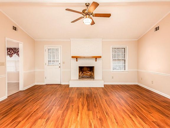 All brick ranch on fenced large level lot with back patio perfect for grilling out. Vaulted ceiling and hardwood floors in the living room which features a fireplace with gas starter. Spacious two car garage and wide driveway - space for many cars! Kitchen features eat in area and there is a separate large dining room.