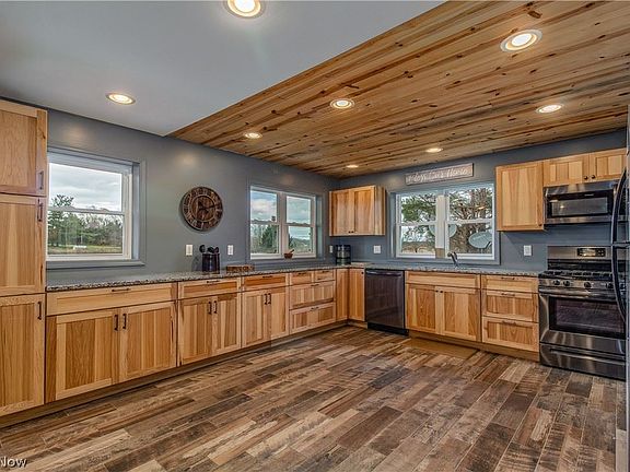 Outdoorsman's Paradise! Sitting over 800 ft off the road & surrounded by woods & water, this 2 bedroom 1780+ sq ft ranch has so much to love! There's a 3 acre private lake that features 3 fishing docks, a white sand beach & platform in the middle ideal for fishing/diving into the refreshing water on those hot summer days. 14 ft depth in the middle & loaded w/ 18 in+ Lg mouth, Sm mouth & catfish. The house has a hickory & granite kitchen w/ soft close drawers & cabinets + black stainless appliances. 2 spacious bedrooms, HUGE great room w/ XXL wood fireplace & hearth + a custom made live edge hickory mantle. The main bath sports a walk-in ceramic shower plus laundry area. The 14 x 20 master bedroom boasts a huge closet + doors to a concrete patio, walkway to a fishing dock + the beach & firepit. Vinyl sided exterior & new in 2020 metal roof. Also there is a 40 x 30 detached heated garage with water, in-floor heat, XL work bench and 4 overhead doors including a 10 ft door. A 560 sq ft fully furnished 1 bedroom 1 bath apartment above the garage adds utility to this unique property, while providing unmatched views from the second story deck & includes a full kitchen & stackable washer/dryer. The woods is filled with wildlife & has trails cut through for walks, 4 wheeler rides etc. With the open field beyond the garage, this property would make a fantastic horse property as well. Located less than 5 mins from Rt 11 & 7 mins to Rt 90 there's a lot to love here! Come take a???????????????????????????????? look..