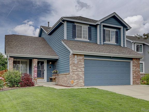 Fantastic 3 bedroom, 2.5 bath in East Quincy Highlands neighborhood. Cherry Creek School District. The covered front porch with porch swing welcomes you. Open floor plan with vaulted ceilings in the large family room and gas burning fireplace. Kitchen boasts newer appliances including a double oven, ample cabinets and walk in pantry. Built-in office niche next to the kitchen. Enjoy your private fenced backyard with large deck (12 ft x 32 ft), new sprinkler system and sod, 10x12 shed, and fenced dog run. Upstairs features a large primary bedroom has mountain views with a walk-in closet and ensuite primary bath. There are 2 additional bedrooms and full bath upstairs. 2 car garage with new side mount garage door opener and newer insulated garage door. Full unfinished basement with laundry. Easy access to E470, I25, I70, Buckley AFB, DTC, golf courses, reservoirs, and shopping at Southlands.