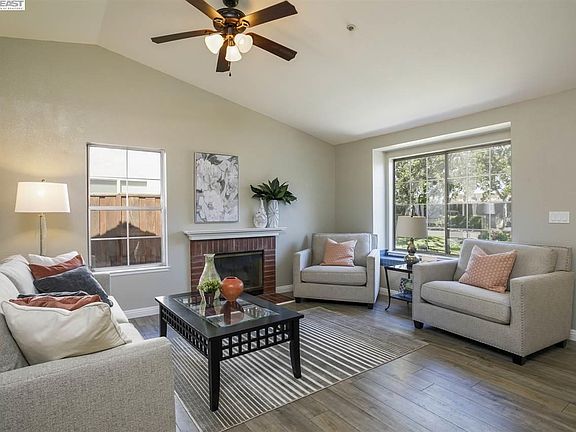 This beautifully UPGRADED move in ready Single Story home is waiting for you! WALK to DOWNTOWN LIVERMORE! Charming tree lined street. Bright OPEN FLOORPLAN gorgeous high end laminate flooring throughout. Vaulted ceilings highlight this bright inviting living room. Amazing UPDATED KITCHEN Bright White Cabinets appointed with Quartz Countertops & Large deep sink, Stainless Steel Appliances & Area for Dining Table! UPGRADED bathrooms, Mirrored Closet Doors in All bedrooms, Great low maintenance backyard with Pergola for a bit of shade- Great for entertaining! Washer/Dryer & Refrigerator Included! Just MOVE IN! Community Pool, Playground Area & Sports Court. Just minutes to Livermore's Wonderful Wineries!! Walk to Downtown Restaurants, Bankhead Theater, Movies, Fun water features, Farmer's Market! Come and see this AMAZING cozy single story home for yourself! Home Inspection & Section 1 CLEARANCE. Don't wait any longer....This home is ready for you to Move In!