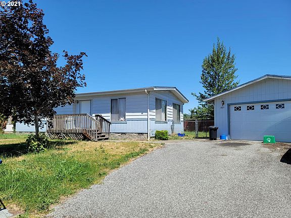 Cozy manufacture home with a 2 car detached garage. Backyard is fenced. Newer roof and heat pump. Room to park your RV or boat.