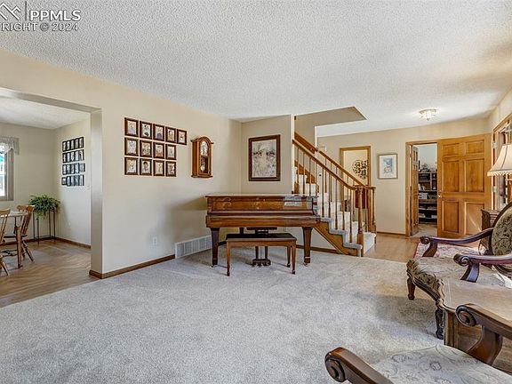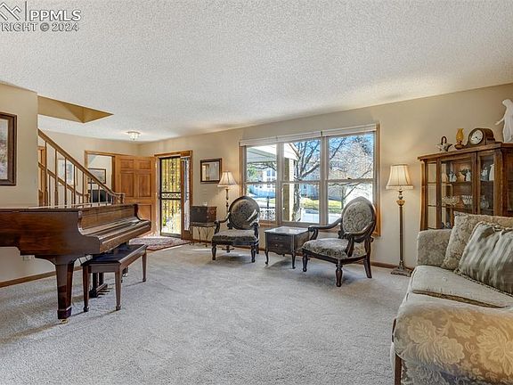 Imagine a Lifestyle Nestled Between the Rising Bluffs and Pikes Peak Views of Quiet Sunset Mesa! It can be yours in this spacious home on a cul-de-sac street designed for true Colorado Living! Just look at the room sizes! Plus, a nearly 1/3 acre lot and magnificent year-round sunroom built by Champion! There's room for everyone to spread out and enjoy this fabulous home... Enter into the spacious living room with natural bluff views. A main-level office/optional 6th bedroom awaits for work/school from home, with a nearby sprawling family room complete with vaulted ceilings, skylights, a fireplace for those cool Colorado nights, and a walkout to the incredible sunroom. The main level is completed by the adjacent kitchen/dining nook and formal dining room... perfect for entertaining and gatherings. Upstairs, keep everyone together with 4 bedrooms, including a massive Master Suite with a reading area and 5-piece Master Bath. The auxiliary bedrooms are larger than most and include two walk-in closets. The garden level basement offers natural sunlight and is currently a huge en suite, featuring a large bedroom, wide open great room and full bath and closet. Storage? You've got it... with a generous 13x16 room prepared for all of your extras. Outside, enjoy the giant backyard with two patios (23x15 and 16x14) in addition to the 14x18 sunroom. Mature trees and a perennial garden frame your Pikes Peak views and plenty of room to create the outdoor living space you've dreamed of. The oversized three car garage offers even more storage and plenty of room for your "toys." Nearby trails lead into hours of exploring the natural bluffs where you call home. It's hard to believe this natural retreat is mere minutes to schools, shopping, entertainment, and more... Centrally located with Easy Access to I-25, Academy Blvd, Powers Blvd, Ft. Carson, Peterson SFB, the US Air Force Academy, and UCCS. A rare offering.. Be Sure and Check out the Virtual Tour and 3D Matterport Tour!