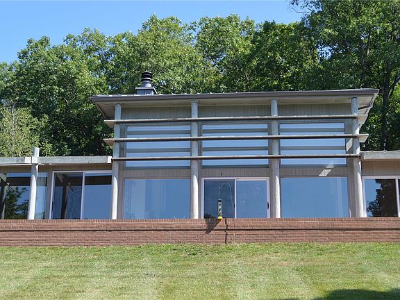 This is an amazing custom built contempory 3 bedrm, 2 bath ranch on 5 plus very private acres. This home has an amazing floor plan with huge rooms and the right buyer/decorator can make it fabulous. The Massive Great rm has floor to ceiling windows, a 16' coffered ceiling & built-ins that add to the rooms class. The windows look out to 13'X60' patio and a spectacular view of the lake.This lake is private for the 3 property owners that share the ownership of the lake. Off each side of this patio are Lillie Ponds that could be beautiful when filled, or they could become landscape beds. The dining room is massive & has 14' coffered ceilings also.The oversize master suite has a full bath & the private laundry rm right there.A wall of windows that also look out to the lake.The 2nd bedroom is also oversized and has a spectacular view of the lake. The stepup 3rd bedrm offers a walkout to a nice 10X21 Composite deck.The home boasts a fabulous & private inground pool & the 8X26 Patio