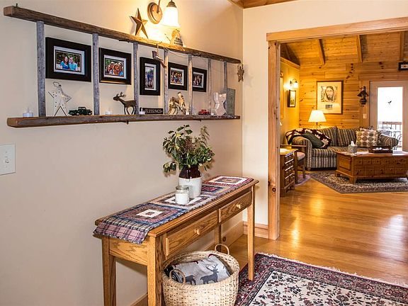 One Owner Log Home ,pristine views of the Shenandoah River,and views of the Massanutten Mountain too. Beautiful wide red oak hardwood throughout the main floor. Great Room w/vaulted beams ,stone fireplace opens to both the great room & master suite. Kitchen boasts granite, lots of counter space, custom cabinetry.Cozy den with woodstove, 18 seer High Efficiency Heat Pump, master suite with whirlpool and shower. 2 more bedrooms on main floor, with 4th bedroom in lower level. 18x30 rec room plumbed for wet bar 3rd garage on lower level would make a great workshop. 24x8 covered front porch,26 x10 covered rear porch. Fabulous views of the Shenandoah River, with easy access,a rare find & only minutes from town & shopping. lot can be subdivided.