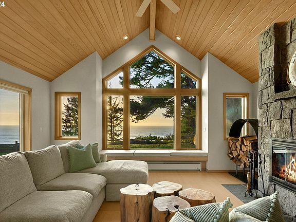 Perched in the cradle of Neahkahnie Mountain, this oceanfront sanctuary delivers calming tranquility with awe-inspiring views at every turn. A rare opportunity to capture front-row privacy, you?ll love the quiet neighborhood and expansive acre-plus of meticulously landscaped coastal Oregon bliss. Striking interior details include surreal vaulted wood ceilings, PNW-inspired stone fireplace and picture windows throughout. Life seems miles away here. Come find your peace between forest and sand.