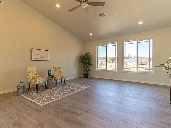 Beautiful new construction on lg 1/3 AC lot! Great flrplan in this single-lvl hm on end-of-street location. Spacious gathering room has 9' clgs & vaults + lrg windows w/lovely views. Stylish grey laminate wood floors are gorgeous. Kitchen w/granite, matching SS appl (refrig incl!), and island w/eating bar will be a favorite hangout. Modern tiled bathrms w/granite counters. Enjoy the farm views from the 12'X20' deck! Wide doors/hallways.