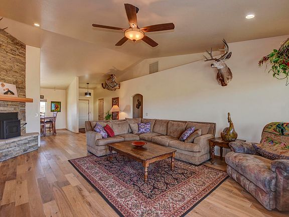 Amazing Views of the Mingus Mountains and the entire Lonesome Valley! This 2017 Newly built home features loads of upgrades! It features wide plank wood flooring, stone fireplace, matt finish granite countertops with an oversized island in the kitchen. The home features 4 bedrooms, and a split bedroom floor plan. There is a 3 car attached garage and a 936 sq ft detached garage. The detached garage is plumbed for a wood stove. The property is located at the end of the road offering unbelievable views of the stars! and lights in Prescott Valley.