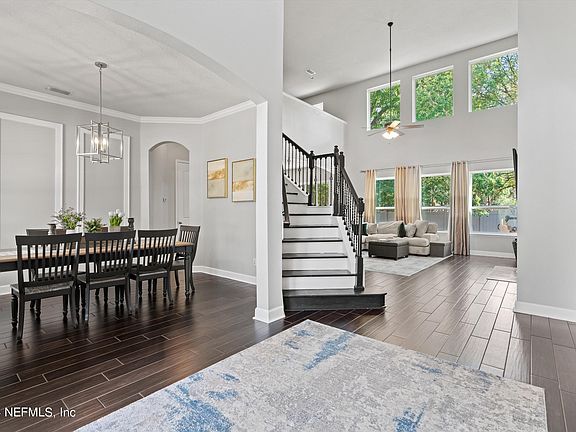 This home is tucked away from the hustle & bustle but conveniently located in the heart of Mandarin! Only minutes from the highway, shopping, restaurants, and entertainment!! If you've been dreaming of a luxury home with beautifully upgraded features, this is the home for you! Upgraded kitchen with stainless steel appliances, luxury white cabinets, beautiful countertops, & the space flows so well into the living room! Living room boasts high ceilings with Massive windows for tons of natural lighting! Primary bedroom located on the first floor! Incredible primary bathroom & walk in closet! Another bedroom & full bathroom downstairs too. Luxury tile floors in all living areas, upgraded vanities & fixtures in all bathrooms! 3 bedrooms located upstairs with a loft & full bathroom! The screened lanai in the backyard is perfect for relaxing after a long day! There's even room for a future pool in the back yard on the right side of home! Come see all that this home has to offer for yourself!